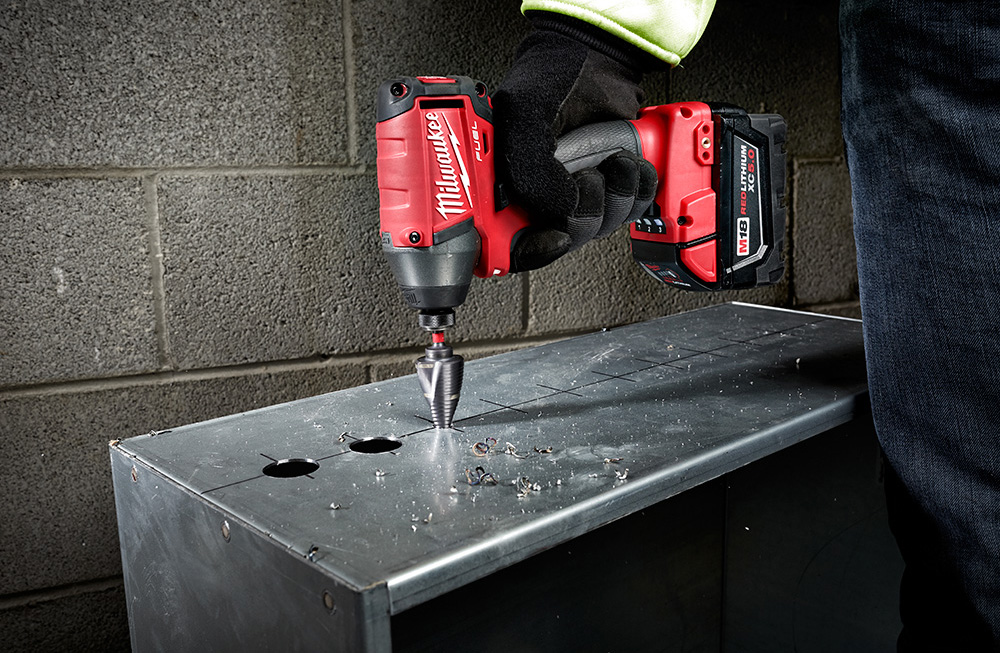 MILWAUKEE, WI- Milwaukee Tool is proud to announce it has engineered the most durable and fastest-cutting impact step bits on the market. Made in the USA, the new Shockwave™ Impact Duty™ Step Bits are designed to deliver best-in-class performance in impact drivers and the versatility to be used in drills. The combination of an optimized SHOCKZONE™ shank, Titanium Aluminum Nitride coating, and Rapid Strike™ tip make these step bits the longest-lasting and fastest-cutting impact step bits available.